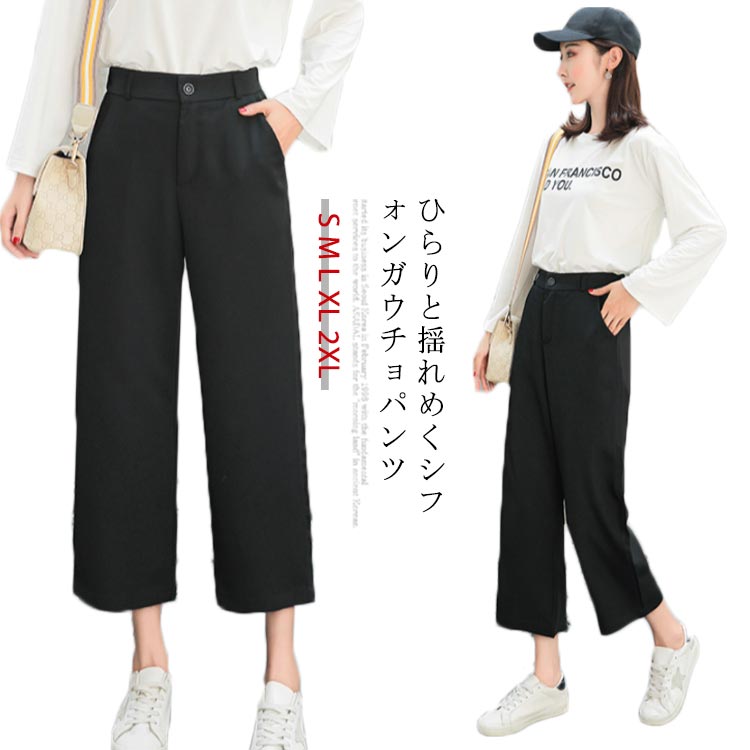 レデイース ファッション パンツ 大きいサイズ 小さいサイズ キュロットスカート ガウチョパンツ ワイドパンツ レディース シフォン 裾プリーツ リブフレアパンツ ガウチョ パンツ ボトムス スカーチョ ゆったり レディース パンツ おしゃれ 送料無料