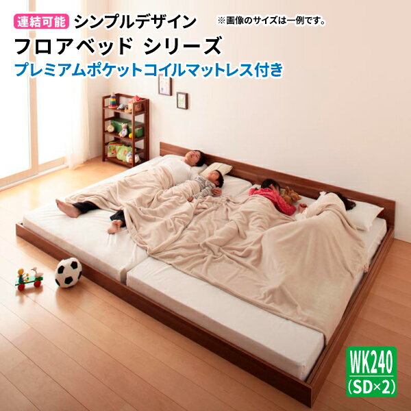 送料無料 フロアベッド ワイドK240(SD×2) 連結可 省スペースデザイン Grati グラティー プレミアムポケットコイルマットレス付き ローベッド ウォールナット オーク マットレスセット マット付き 親子ベッド 連結ベッド 040111256